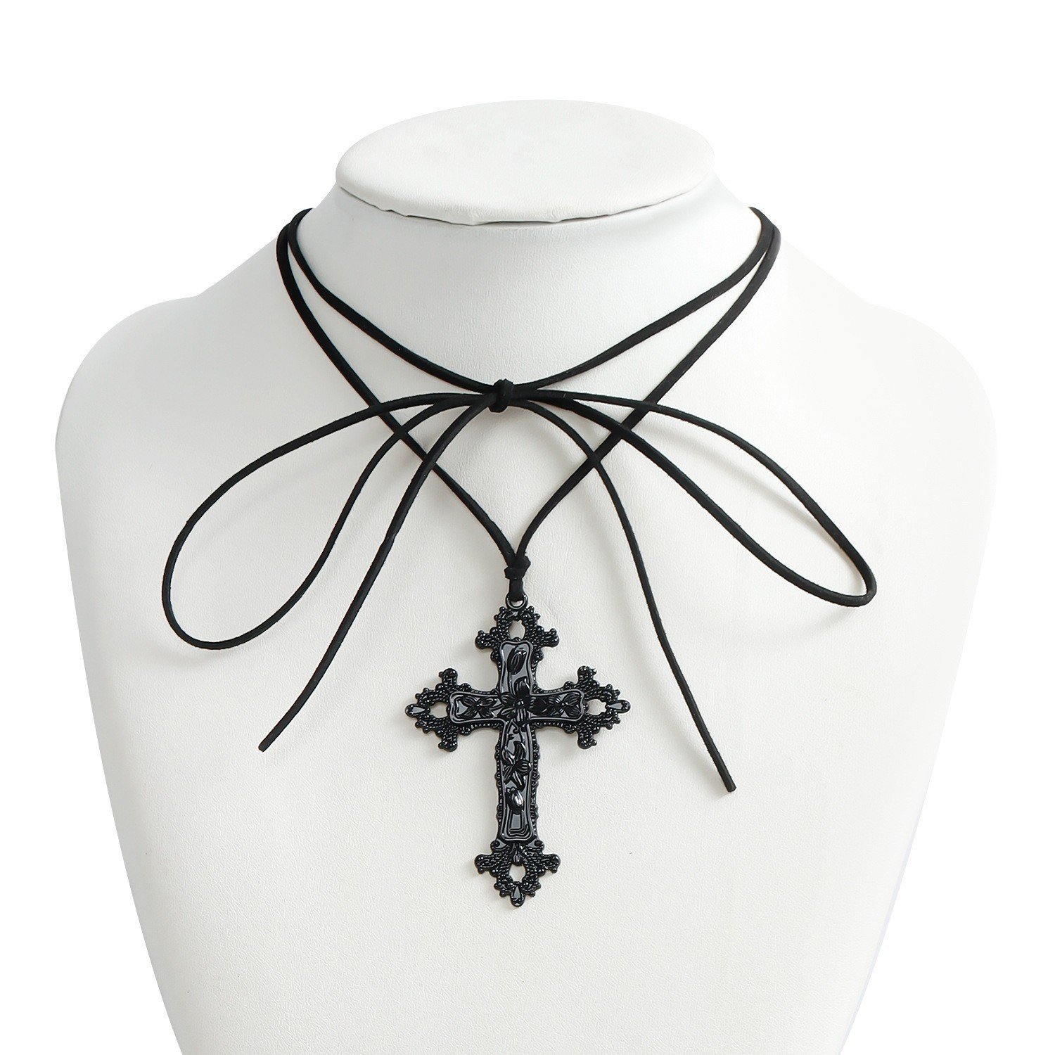 cross-border jewelry, dark gothic style cross, love Korean velvet clavicle chain, sweet cool hot girl Y2K necklace