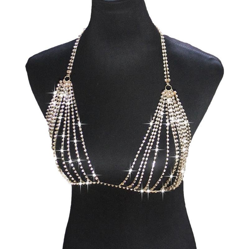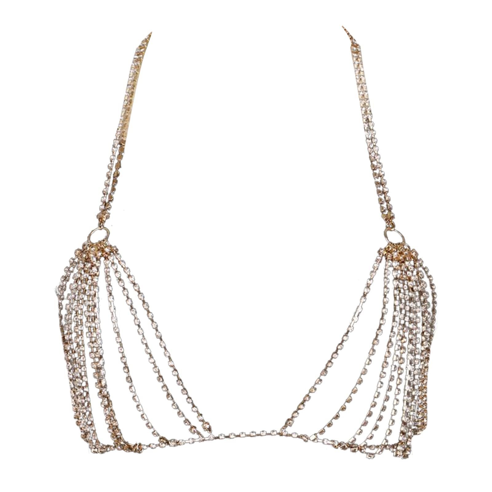 Sethain Boho Crystal Body Chain Sparkly Rhinestone Bikini Chest Chains Bra Nightclub Body Accessories Jewelry for Women and Girls (Silver)